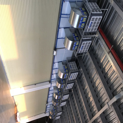 這種方式就是我們俗稱(chēng)的空調(diào)降溫,其原理是利用制冷劑蒸汽壓縮式方法,產(chǎn)品有中央空調(diào),凈化空調(diào)以及分體式空調(diào),典型的如中央空調(diào)。其降溫效果最好,但投資成本卻很高,運(yùn)行費(fèi)用也高,所產(chǎn)生的新風(fēng)量卻較少,空氣質(zhì)量差,這類(lèi)廠房降溫設(shè)備一般需要專(zhuān)業(yè)人士來(lái)維護(hù),不適于解決廠房等大面積生產(chǎn)工廠的通風(fēng)降溫問(wèn)題。